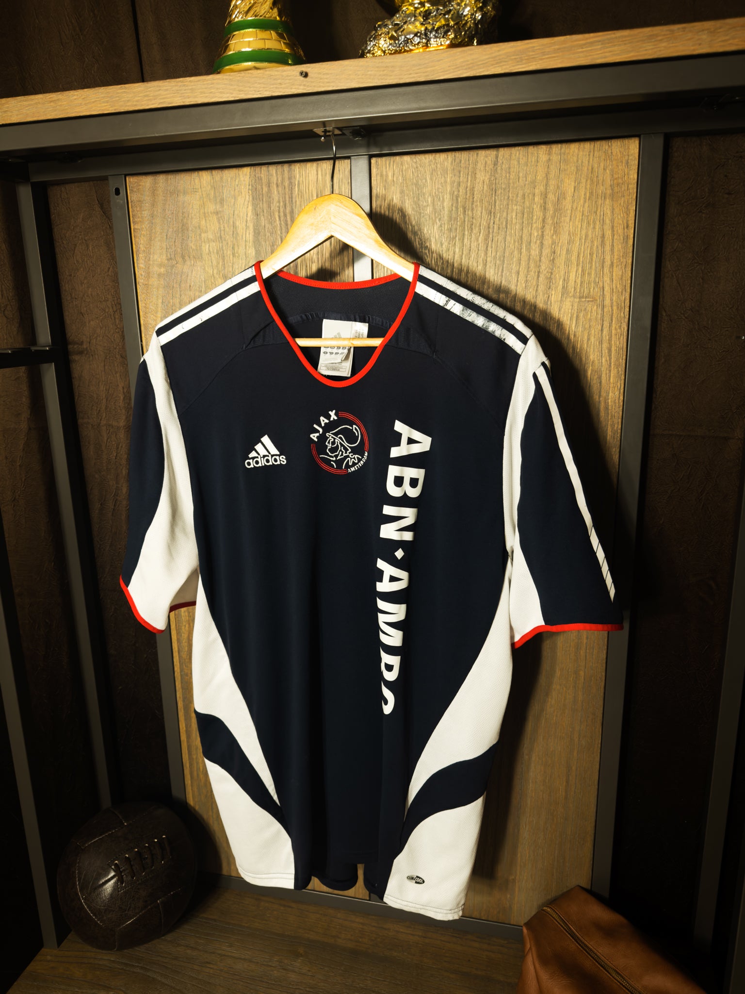 Throw it back to mid-2000s Eredivisie style with the Ajax 2005/2006 Away Jersey, a vintage Adidas classic in deep navy with bold red accents. This shirt reflects Ajax’s modern European energy during the early 2000s, making it an essential piece for any retro football kit collector.