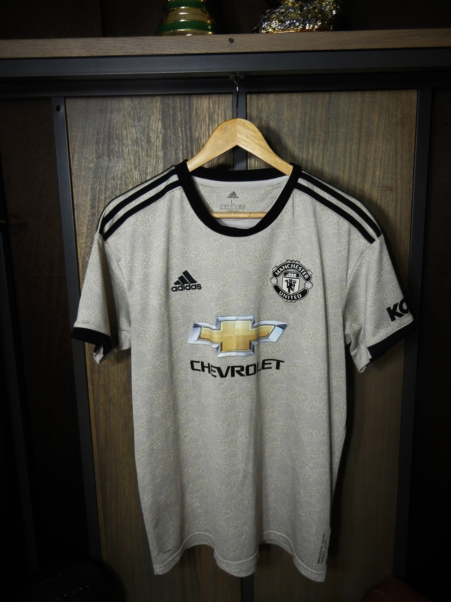 Manchester United 2019/20 Away Jersey – Bruno Fernandes #18 – Size L – Beige Adidas Kit (MPN: ED7388)