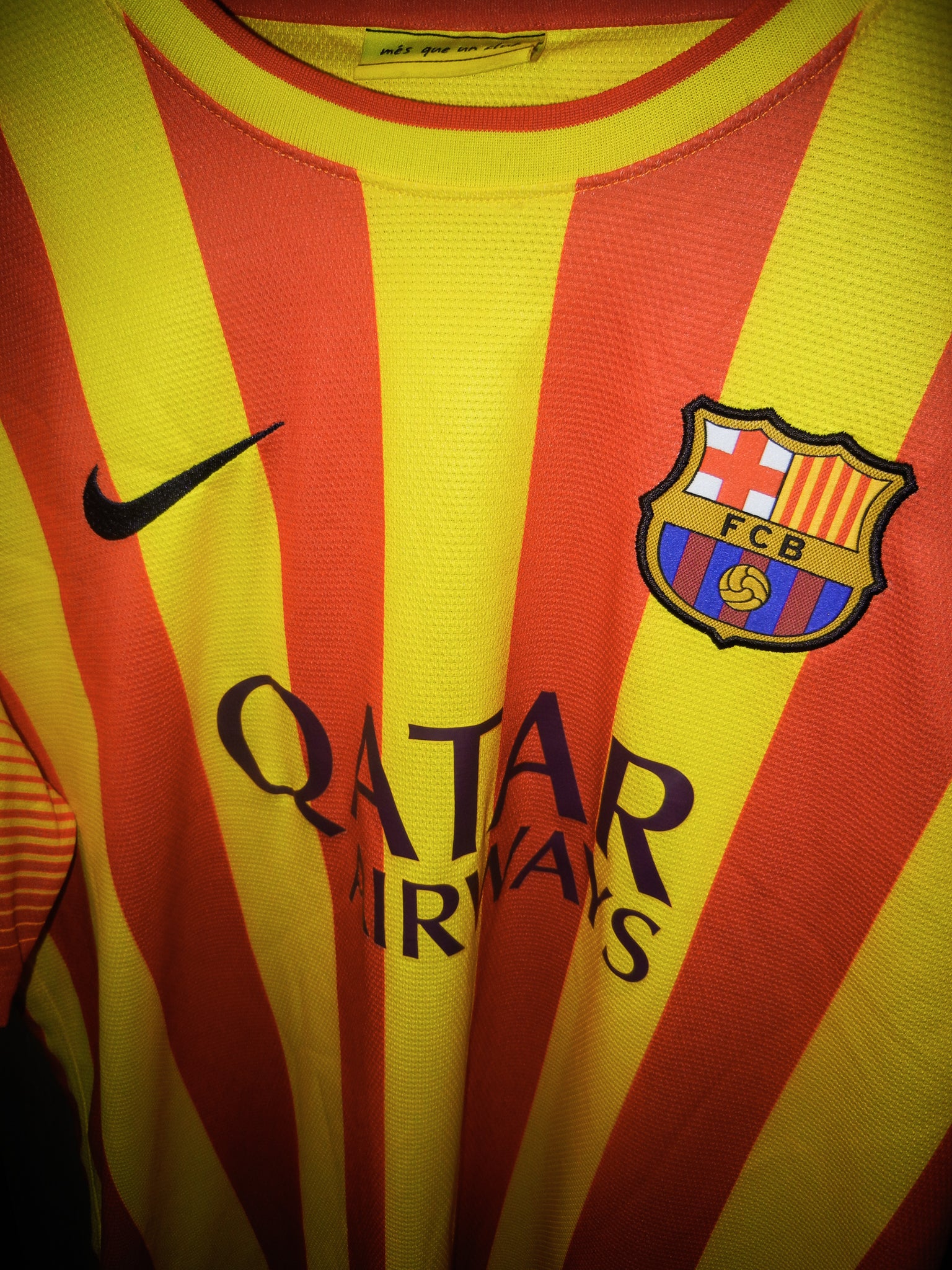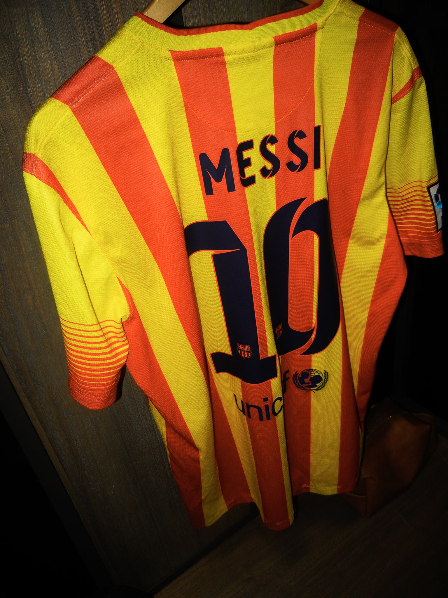 Stand out like the GOAT with this Barcelona 2013/14 Away Jersey, worn during Lionel Messi’s reign at the top of European football. Featuring his iconic #10 on the back in official La Liga print, this vibrant yellow and red gradient Nike design is one of the most unique kits in the club’s history.